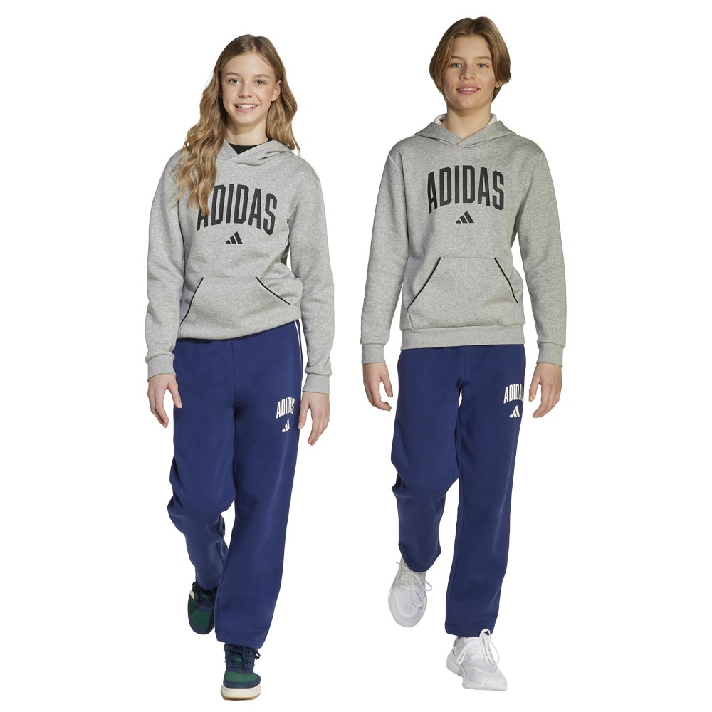 Παιδική φόρμα Αdidas με σχέδιο εμπνευσμένο από την κολεγιακή αισθητική, ιδανική για καθημερινή άνεση και casual εμφανίσεις. Η fleece κατασκευή προσφέρει απαλή αίσθηση, ενώ οι πλαϊνές τσέπες και οι χαρακτηριστικές ρίγες σε αντίθεση προσθέτουν στυλ και λειτουργικότητα. Ένα διακριτικό λογότυπο τονίζει τη σύνδεση με την αθλητική κληρονομιά της Αdidas.