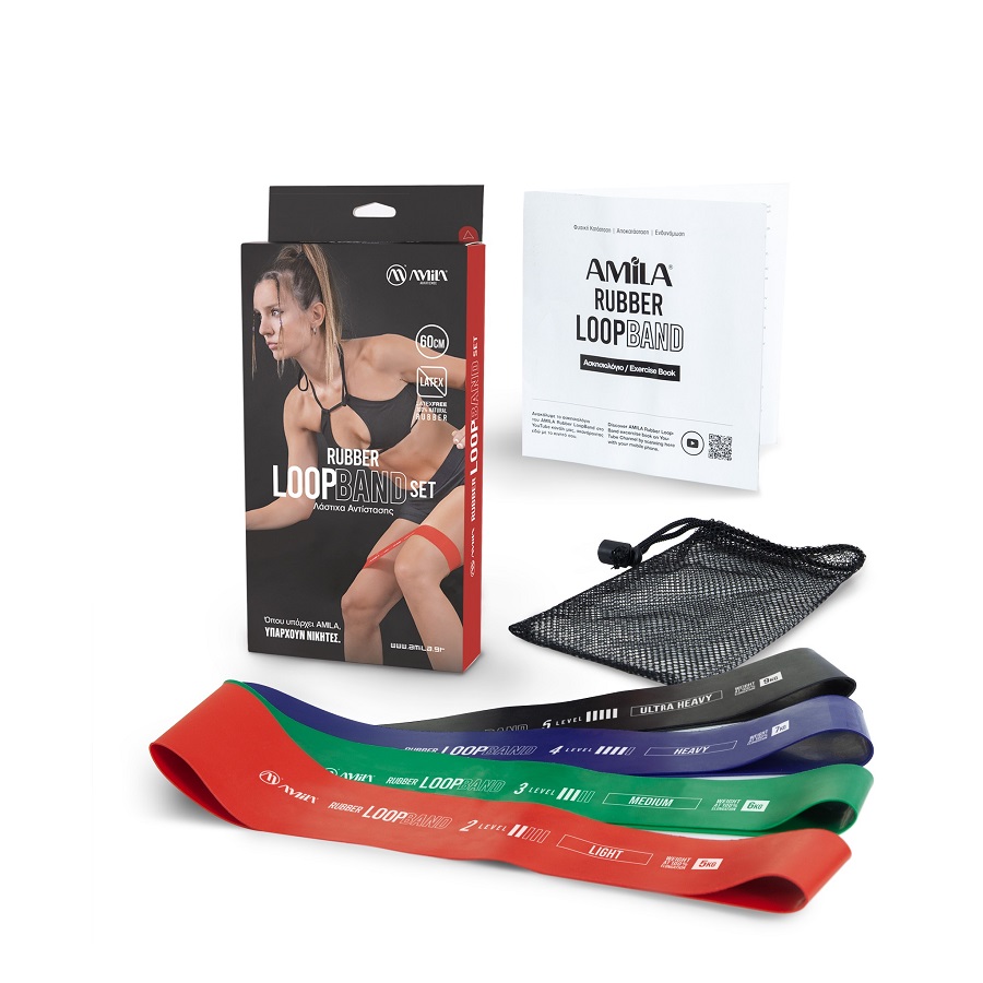 Σετ 4 AMILA Small Loop Band, από λάστιχο Latex Free, σκληρότητας Light, Medium, Heavy και Ultimate.