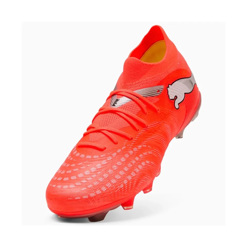 Απόλυτος έλεγχος στις ντρίπλες και τα σουτ, με τα ανδρικά ποδοσφαιρικά παπούτσια με τάπες PUMA Future 9 Match FG/AG! Tα ανδρικά ποδοσφαιρικά παπούτσια με τάπες, διαθέτουν άνω μέρος από ελαφρύ διχτυωτό υλικό για διαπνοή και ελαστικό πλεκτό κολάρο για άνετη εφαρμογή. Το σχήμα των ταπών και η τοποθέτησή τους γύρω από το σημείο περιστροφής επιτρέπουν ευελιξία 360 μοιρών και ελευθερία κινήσεων, ώστε να ξεφεύγεις από τους αμυντικούς με ευκολία.